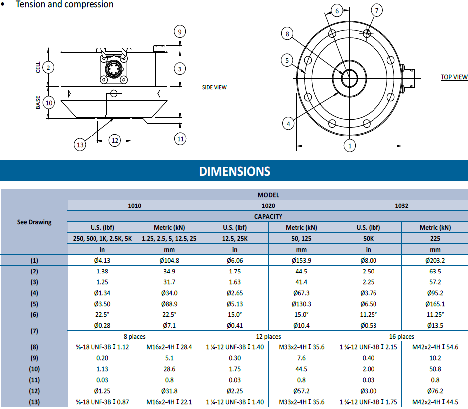 Les capteurs galette ont une précision < ± 0.02 % de la pleine échelle, une très grande répétabilité et stabilité dans le temps. Ils sont disponibles pour des mesures de force en Traction et Compression ou en compression seul.