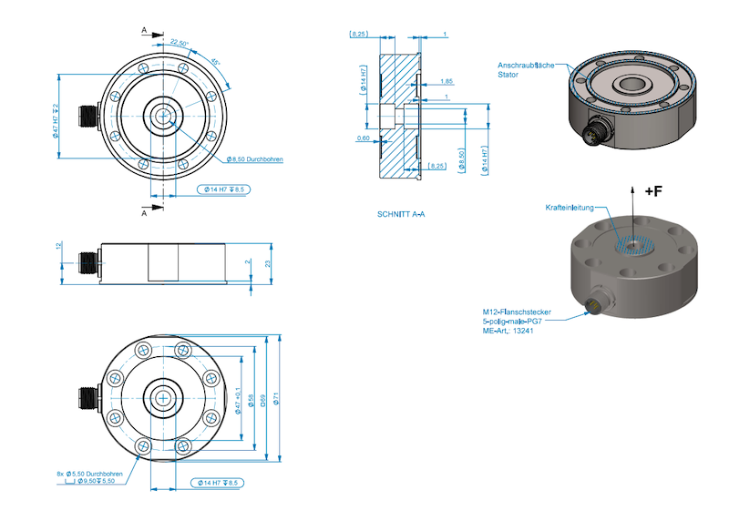 IP68 low profile load cell – ±200N to ±5kN