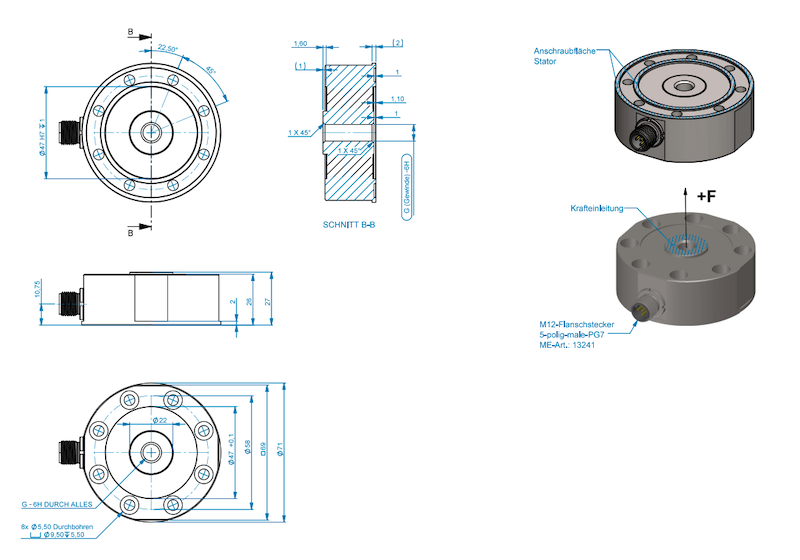 Compact tension/compression load cell - ±1kN to ±10kN - M10 - Accuracy 0.05%
