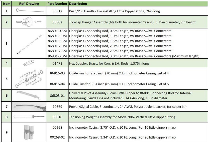 Multiple 906 inclinometers can be connected together to create a high-precision instrumentation system for boreholes extending several tens of meters deep. All required accessories are available on request.